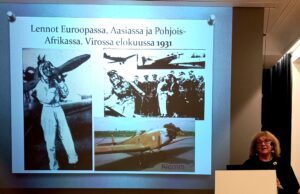 Pärnun Zonta-kerhon jäsen Tiia Ööpik kuvaili riemastuttavasti Amelia Earhartin virolaisen ystävän ja kollegan Elvy Kalepin pitkää ja värikästä elämää yhtenä ensimmäisistä naislentäjistä, mutta myös taitelijana, lelusuunnittelijana ja seurapiirien tähtenä. Elvy oli todellinen tulisielu!