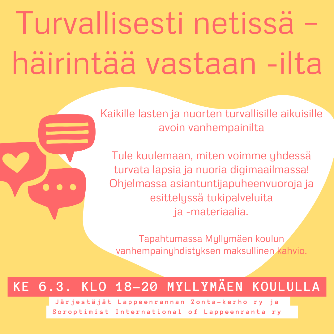 Turvallisesti netissä -häirintää vastaan ilta 6.3.2024 Lappeenranta Myllymäen koulu -
