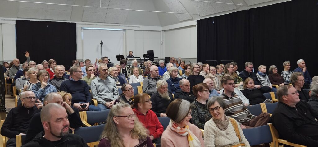 Keskustelu oli vilkasta paneelissa ja myös miesvaltaisempi yleisö osallistui aktiivisesti keskusteluun. Kuulijoita oli n 100. Tilaisuudessa esiintyi iisalmelainen lauluyhtye Totot esittäen luontoaiheisia lauluja. Väliajan jälkeen nähtiin Anne Välinoron dokumenttielokuva ” Nainen, jolle puu puhui ” pääosassa metsuri, MMM Mirja Nylander.