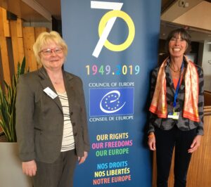 Kuvassa: Zonta Internationalin Council of Europe Committeen puheenjohtaja Anita Schnetzer-Spranger ja jäsen Tuija Heikkilä Strasbourgissa 2019.