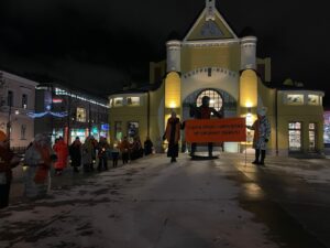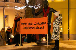 Kuopiossa järjestettiin 25.11. klo 17 alkaen lyhtykulkue sekä Siskotyttö ja Veljmies -patsaiden oranssiksi huivitus. Kokoontuminen oli Siskotyttö patsaalla ja määränpäänä Veljmies (kuva).
