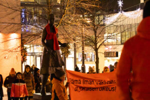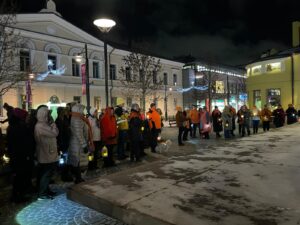 Kuopiossa järjestettiin 25.11. klo 17 alkaen lyhtykulkue sekä Siskotyttö ja Veljmies -patsaiden oranssiksi huivitus. Kokoontuminen oli Siskotyttö patsaalla ja määränpäänä Veljmies (kuva).